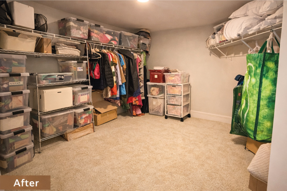 A clean home is only the beginning. We also offer organization services designed to bring clarity and ease to your space. Whether it’s a playroom, closet, pantry, or everyday storage areas, we thoughtfully arrange and simplify your home so it feels lighter, calmer, and easier to live in.